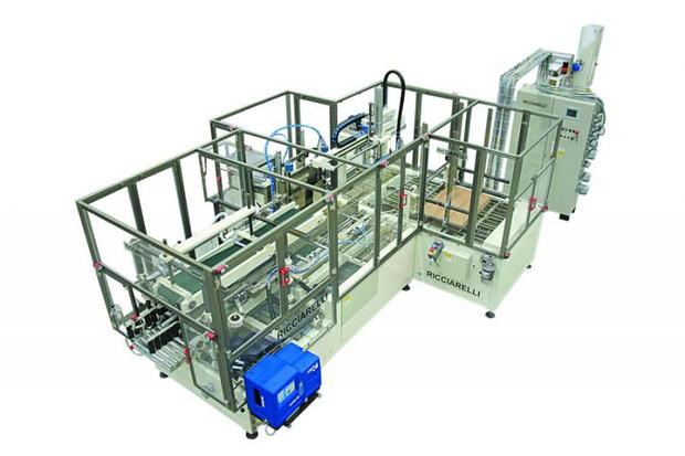 Automatic casepacker for packing cartons into pre-glued cardboard RSC; cartons are pushed end-first into cases by pushers. Casepacker complete with hot-melt gluer or/ and taper at outfeed. Max inlet speed: 120 cartons per minute