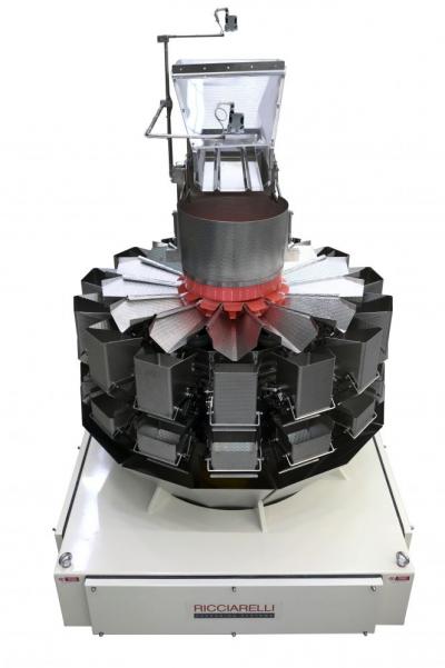Multi-head weigher with 14 weighing heads, controlled by independent stepper motor drive. Available in standard and stainless version. Max mechanical speed 120 weights/min
