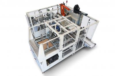 Encartonadora automática para envases almohada, de fondo cuadrado y doble fondo cuadrado dispuestos tumbado o verticales en cartón preformado con cierre superior posterior con máquina tapadora y otras soluciones.