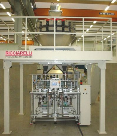 Conditionneuse verticale double à grande vitesse, composée de deux sections placées côte à côte, chacune dotée de systèmes indépendants pour l’alimentation du produit, la formation du sachet, l’entraînement du film et la soudure. La conditionneuse forme les sachets à partir d’une bobine de film accouplé, avec système de soudure à barre chaude, actionnement des mâchoires soudantes et entraînement du film avec des moteurs brushless. Vitesse mécanique max. : 200 sachets à la minute.