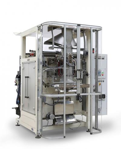 Conditionneuse verticale à moyenne vitesse, pour grands volumes à conditionner en sacs formés à partir de bobine de film avec LAIZE MAXIMALE ALLANT JUSQU’A 1100 mm, système de soudure à impulsion de chaleur, BARRE CHAUDE ET CHALEUR CONSTANTE, actionnement des mâchoires soudantes et entraînement du film avec moteurs brushless.